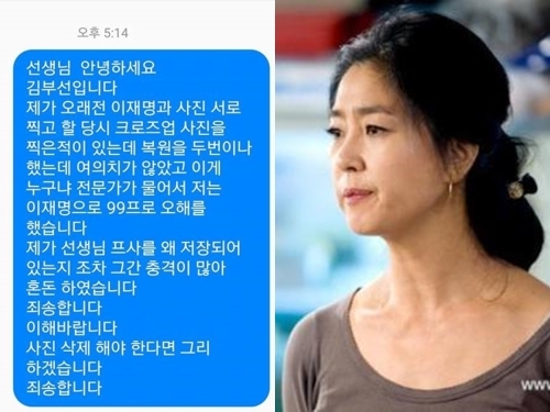 이에 김부선은 해당 사진을 삭제한 후 해당 국장에게 보낸 사과의 메시지를 공개했다.