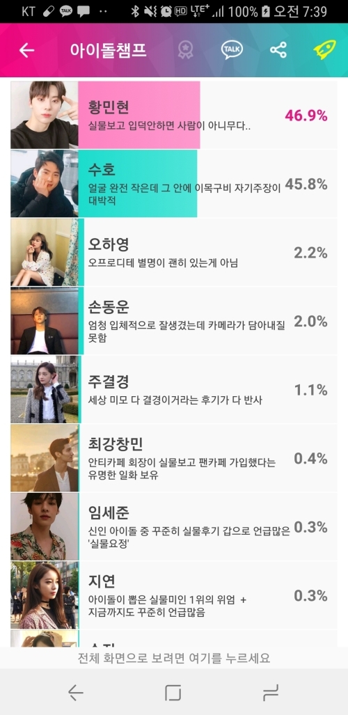 참여형 모바일 아이돌앱 ‘아이돌챔프’(IDOLCHAMP)는 지난 7월 18일부터 8월 1일까지 ‘카메라가 실물 못 담는 아이돌은?’이라는 제목으로 투표를 실시했다.
