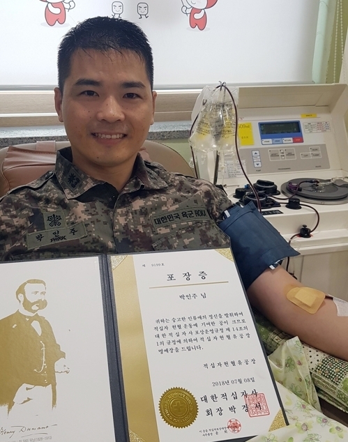 박 소령은 지난 11일에는 광주 북구 용봉동 전남대 후문 헌혈의 집에서 101번째 헌혈을 했다. 박 소령은 “200회를 넘어 300회 헌혈에도 도전하겠다”고 포부를 밝혔다.