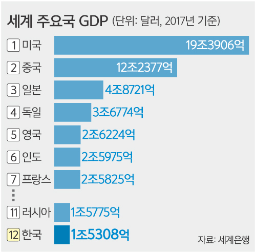 한편 국내외에서 한국인이 벌어들인 총소득(GNI)을 인구수로 나눈 1인당 GNI 순위는 세계은행의 통계산출 기준 변화와 환율변동 등의 영향으로 14계단이나 상승해 2016년 45위에서 31위까지 올라갔다. 나라마다 다른 물가 수준을 반영해 실제 국민들의 구매력을 측정한 구매력평가(PPP) 기준으로도 한국의 1인당 GNI는 3만8260달러로 전년 48위에서 17위나 상승했다. PPP 기준 1인당 GNI 1위는 카타르(12만8060달러), 2위는 마카오(9만6570달러), 3위는 싱가포르(9만570달러)였다. 전문가들은 1인당 GNI 순위의 상승을 곧 일반국민들의 삶의 질 개선으로 단순 연결하기는 힘들다는 분석을 내놓았다.