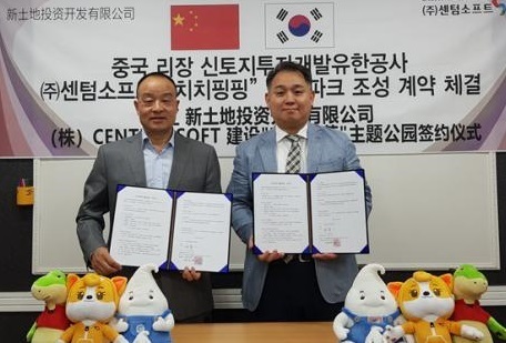 이날 방한한 리장 경제대표단의 리장신토지투자개발유한공사는 센텀소프트와 ‘치치핑핑 테마파크’ 조성 부지 임대 계약을 체결했다.
