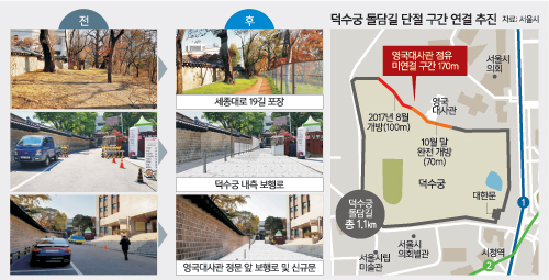 이에 대해 서울시 관계자는 “새로운 통행문과 보행로가 영국대사관 정문에 근접해 설치되는 만큼 영국대사관 측에서 초기에는 보안 문제를 우려하기도 했다”며 “영국대사관이 덕수궁 돌담길의 완전한 연결이라는 국민적 관심과 역사적 중요성에 충분히 공감해 서울시에 적극적으로 협조함으로써 순조롭게 추진될 수 있었다”고 설명했다.