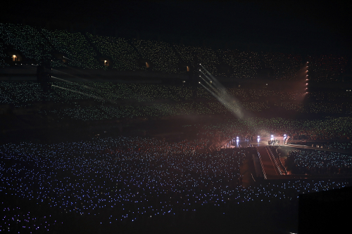 | 야광 물결로 가득찬 방탄소년단의 잠실 올림픽주경기장 공연 모습. |