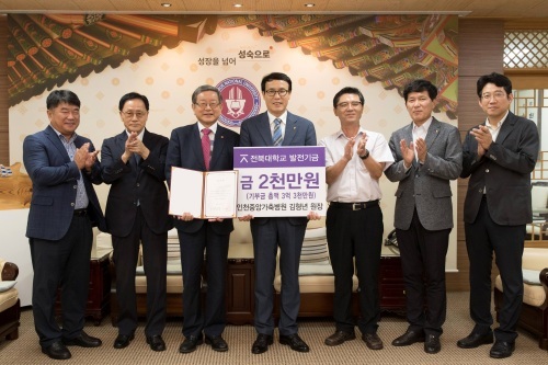 27일 모교인 전북대를 찾은 김형년(68) 인천중앙가축병원장은 후배들을 위해 장학금 2000만원을 이남호 총장에게 전달하며 이렇게 말했다.
