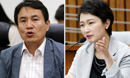| 자유한국당 김진태 의원(왼쪽)과 바른미래당 이언주 의원. |