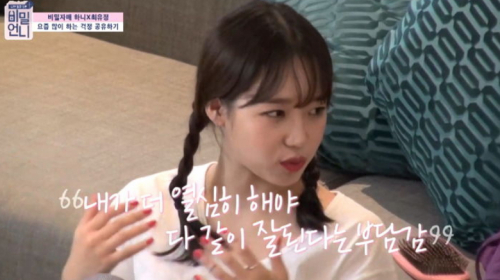 이에 하니는 "나도 그랬다"며 자신의 경험을 이야기해줬다. 하니가 속한 그룹 EXID는 데뷔 초 연습실 조차 없었던 열약한 환경에서 2년이라는 긴 공백기를 가졌다.