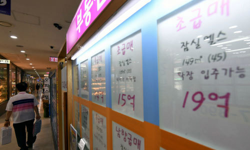| 정부의 부동산 규제책 발표에도 서울과 수도권 일부 지역 아파트 가격이 계속해서 오르고 있는 가운데 3일 오후 서울 송파구 한 부동산에 아파트 매물정보가 붙어있다. 남정탁 기자 |