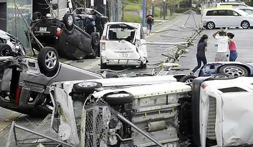오사카(大阪)시 강풍에 넘어져 머리를 다친 40대 남성과 강풍에 날아든 냉방장치 상자에 맞은 또 다른 40대 남성과 베란다에서 떨어진 70대 남성을 포함해 미나토(港)구에 거주하는 70대 여성이 실내에 날아든 함석지붕에 맞아 사망하는 등 포함해 모두 7명이 사망했다.