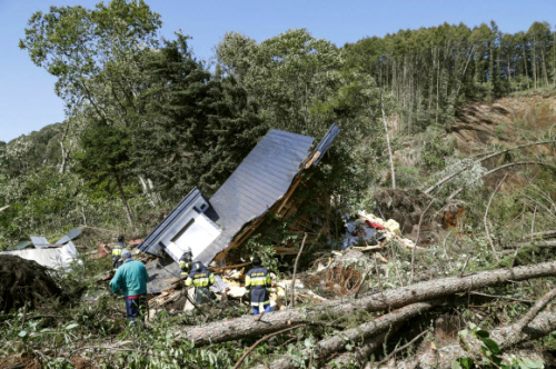 | 6일 오전 일본 홋카이도 아쓰마 마을 산사태 피해지역에서 경찰들이 구조작업을 벌이고 있다.이날 새벽 발생한 규모 6.7의 강진으로 1명이 사망하고 32명이 실종됐으며 100명 이상이 다친 것으로 집계됐다. |