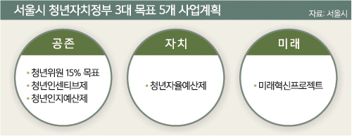 이를 위해 시는 서울혁신기획관 소속 청년정책담당관을 4개팀에서 7개팀으로 확대해 청년청으로 재편한다. 청년청을 책임지는 청년청장(4급)은 개방형 직위로 두고 청년자치를 잘 지원할 수 있는 전문가로 임명할 계획이다. 아울러 청년정책 예산 중 일부를 청년들이 직접 편성해 2022년까지 매년 500억원을 청년자율예산으로 확보할 계획이다.