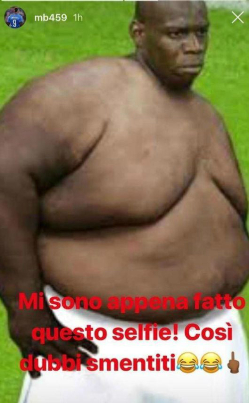 실제로 발로텔는 SNS에 자신의 얼굴에 비만 남성의 상체를 합성한 사진(위)을 올리고 “과체중에 대한 벌금을 받지 않았다”고 밝혔다.