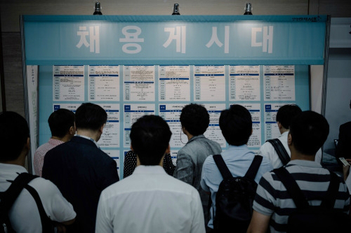 | 지난달 9일 서울 서초구청에서 열린 ‘행복일자리 취업박람회’를 찾은 구직자들이 채용정보를 살펴보고 있다. 하상윤 기자 |