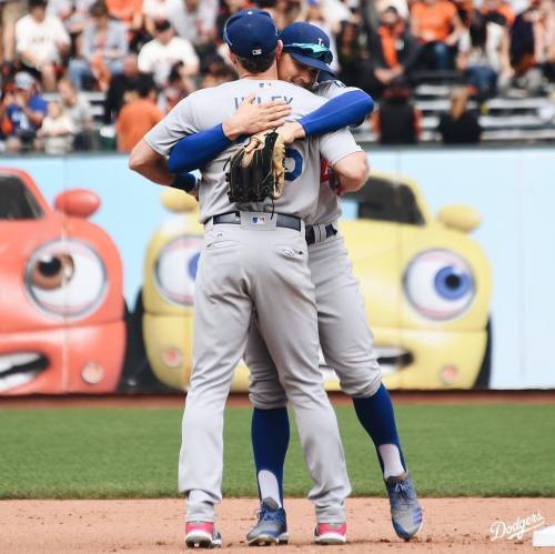 | 다저스 선수들이 샌프란시스코와 정규리그 162번째 경기에서 승리한 뒤 포옹하고 있다. 다저스 인스타그램 |