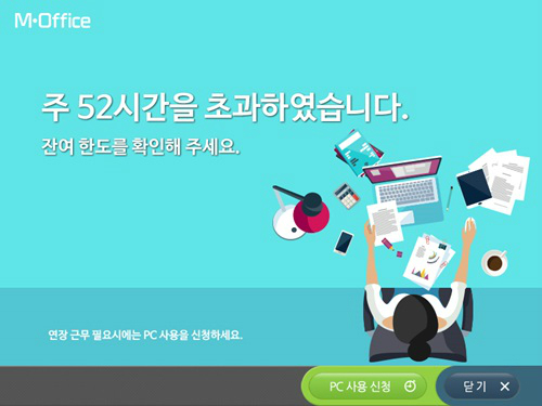 한편, 엠오피스는 정해진 시간에 컴퓨터를 종료시키고 초과근무 시간을 시스템적으로 관리해주며, 각 기업 특성에 맞는 맞춤 솔루션을 제공하는 것이 특징이다.