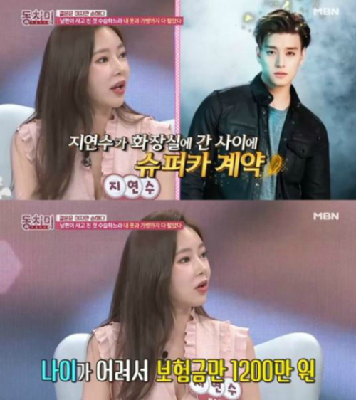 이어 지연수는 "결혼을 하고 1년 후에 '돈은 내가 내는데 타지도 않는 차를 팔자'고 했다. 그런데 팔고 반 년 후에 싼 차를 구입하려고 하다가, 남편이 덜컥 슈퍼카를 계약했더라. 상상도 못한 일이었다. 남편의 나이가 어리니 보험금만 1200만 원이었고, 매달 리스비가 460만원 정도였다"라며 당시 상황을 회상했다.