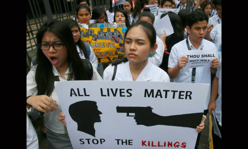 | 필리핀 마닐라에서 열린 대학생들의 마약유혈전쟁 반대 시위. |