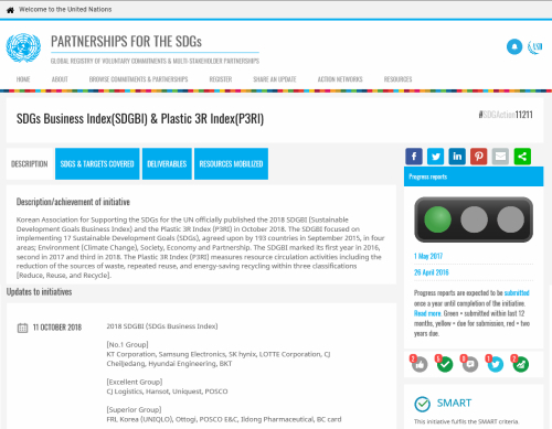 지수 분석과 선정을 발표한 UN지원SDGs한국협회 측은 “이번 지수는 유엔에서 열리는 회의 중 총회와 함께 가장 큰 규모로 열리는 ‘SDGs를 위한 고위급정치포럼(HLPF)’에서 채택된 의견서를 바탕으로 설립되었으며, 인류와 지구환경을 위한 국제사회의 최대 공동목표에 대해 우리 기업의 참여현황을 보는 기준”이라고 설명했다.