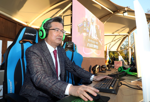| ‘제1회 유성구 대학 e스포츠대회’에 참석한 정용래 유성구청장. 대전 유성구 제공 |