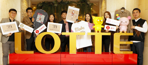 | 25일 롯데쇼핑 직원들이 창립 39주년을 알리는 퍼포먼스를 하고 있다. 롯데백화점 제공 |