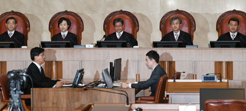 | 1일 오전 서초구 대법원 대법정에서 양심적 병역거부자의 병역법 위법 관련 선고를 위한 대법원 전원합의체가 열리고 있다. 남정탁 기자 |