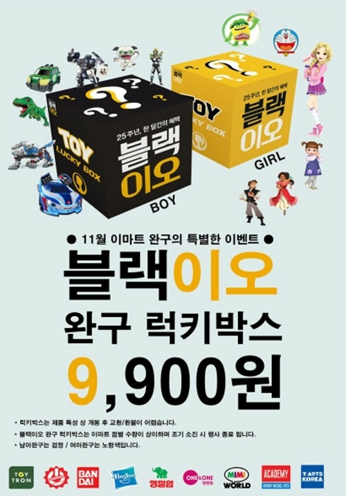 이마트에서는 창립 25주년을 맞아 진행하는 블랙프라이데이 '블랙이오' 행사를 진행하며 럭키박스를 판매 하며 맘카페를 중심으로 화제를 모으고 있다.