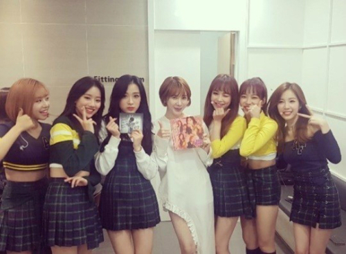 가수 서인영(사진 가운데)이 걸그룹 후배 에이프릴과 함께한 선후배 인증사진을 공개했다.