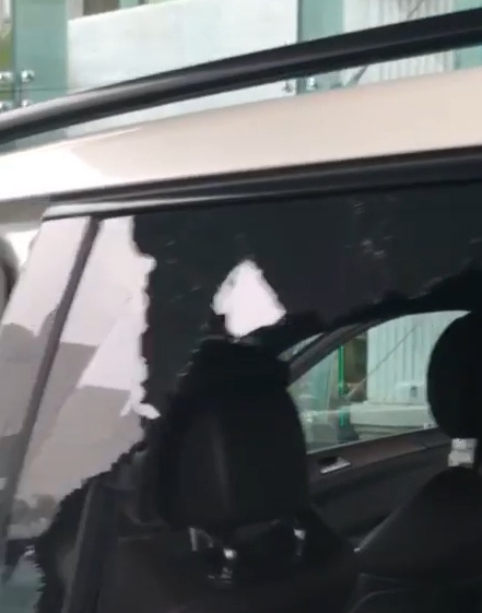 | 도끼가 차안 가방 도난 사고를 당한 뒤 유리가 파손된 차량을 동영상으로 찍었다. 도끼 인스타그램 캡처 |
