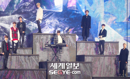 6일  열린 2018MGA(MBC 플러스X지니뮤직 어워드)에서 찰리푸스와 방탄소년단(BTS)이 합동공연을 펼치고 있는 모습.