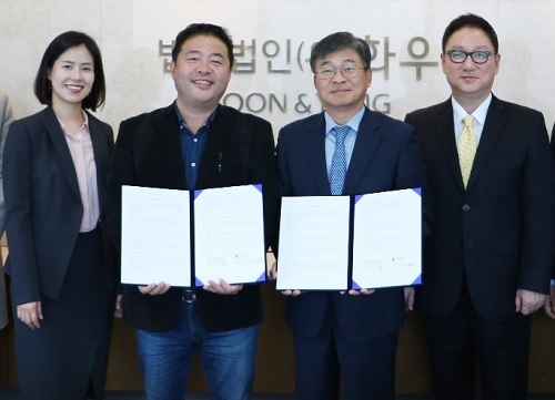 | 법무법인 화우와 사단법인 한국영화프로듀서조합 관계자들이 두 기관의 업무협약 체결 후 기념촬영을 하고 있다. 왼쪽부터 화우 설지혜 변호사, 한국영화프로듀서조합 최정화 회장, 화우 지식재산권 그룹장 김원일 변호사, 화우 문화콘텐츠팀 이상훈 팀장. 법무법인 화우 제공 |