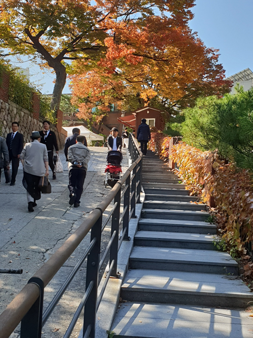 | 서울 중구 중림동 약현성당을 찾은 관광객들이 성당으로 가는 오르막 길을 오르고 있다. |