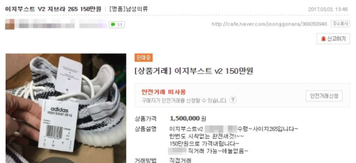 지난해 국내 정가 28만 9000원에 판매됐던 이지부스트350은 일부 오프라인 매장에 구매를 원하는 줄이 수백명에 달할 정도로 화제를 모았다. 또한 회원수가 30만명에 달하는 한 포털 사이트 중고거래 카페에서 평균 150만원에 재판매 돼며 '운동화 재태크'로 입소문을 탔다.