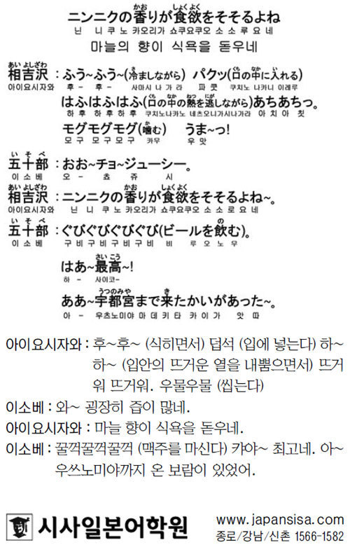 [시사일본어학원의 초단기 일본어 회화] 마늘의 향이 식욕을 돋우네