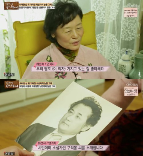 이날 최선자는 남편인 시인 겸 소설가인 구석봉(위에서 두번째 사진)에 대해 “글을 쓴다는 건 그렇게 낭만적이고 멋있지 않다"며 "담배를 하루에 세갑을 피웠는데, 글을 쓸 때 담배가 재떨이에 쌓였다"며 과거를 떠올렸다.
