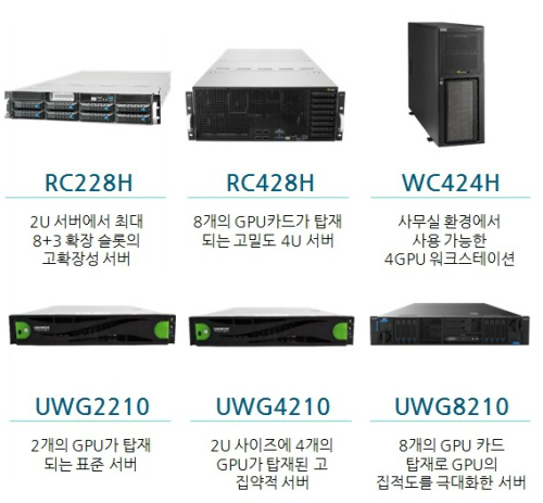 한편 유니와이드테크놀러지는 최근 연산 기능을 강화해주는 GPU(그래픽처리장치) 카드를 장착한 GPU 서버 6종을 출시했다. GPU 서버 6종 가운데 3종은 NVIDIA사의 Local ODM(제조자설계생산) 서버로 인증받아 26년의 업력과 기술력을 다시 한번 과시하고 있다.