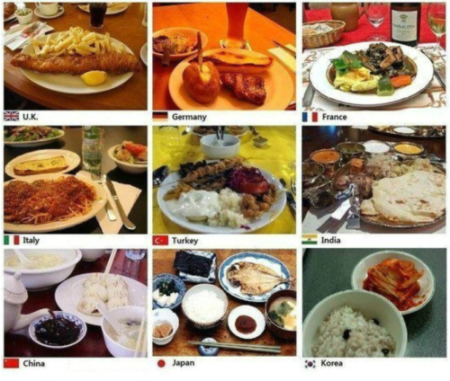 해당 게시물은 영국, 독일, 프랑스, 이탈리아 그리고 터키 등 세계 각국 식탁의 이미지를 담고 있다.