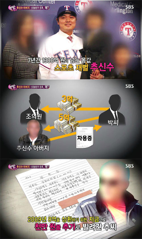 ‘빚투’ (Debt too, 나도 사기 피해를 봤다) 논란이 연일 이어지고 있는 가운데, 미국 프로야구 선수 추신수(사진 세번째) 부친 추모(65)씨가 5억원에 달하는 빚을 갚지 않았다는 주장이 제기됐다.