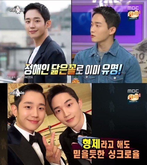 김정현 MBC 아나운서(맨 위 오른쪽 사진) 아나운서가 방송에서 닮은 꼴 배우 정해인(〃〃 왼쪽 사진)와 비교돼 '억울하다'고 호소했다.