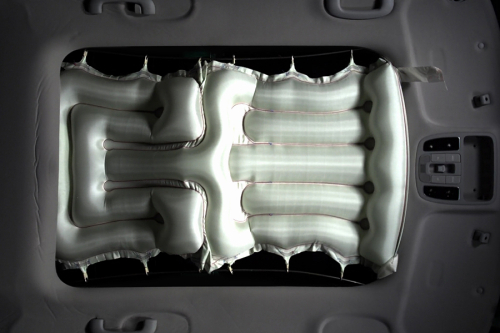 파노라마 선루프 에어백 시스템(사진)은 말 그대로 선루프를 위한 안전장치입니다. 파노라마 선루프를 열고 주행을 하다 사고가 발생하면 탑승자가 이곳을 통해 튕겨 나갈 가능성이 있는데요. 파노라마 선루프 에어백 시스템은 사고 발생 시 0.08초 만에 지붕을 덮어 탑승자의 이탈을 방지해줍니다. 또한 탑승자의 머리에 가해질 수 있는 충격을 줄일 수 있어 심각한 상해도 막아줄 것으로 기대되고 있습니다.