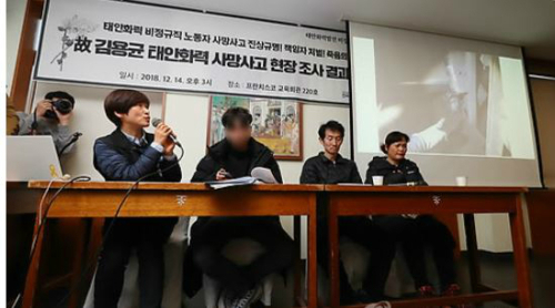 '태안화력 비정규직 노동자 사망 사고 진상규명 및 책임자 처벌 시민대책위원회'(이하 ‘시민대책위원회’)와 김군의 유족은 지난 14일 서울 정동 프란치스코 교육회관에서 개최한 ‘사망사고 현장 조사 결과 공개 브리핑’에서 사고 경위와 원인을 직접 설명했다.