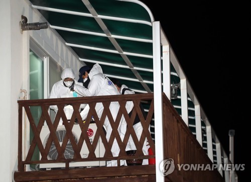 | 10명의 사상자가 발생한 강릉시 경포의 아라레이크 펜션 사고현장에서 18일 밤 국과수 관계자들이 조사를 하고 있다. 이날 오후 1시 12분께 이 펜션에서 대학수학능력시험을 끝낸 남학생 10명이 단체 숙박 중 의식을 잃고 쓰러진 것을 업주 등이 발견했다. |