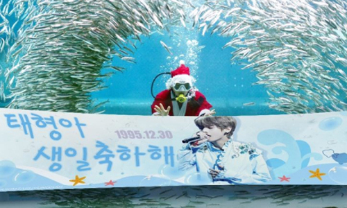 방탄소년단 뷔의 중국팬클럽 바이두태형바에서는 지난 23일부터 내년 1월 1일까지 뷔의 생일을 기념해 국내 유명 아쿠아리움을 뷔로 장식하는 이벤트를 열고 있다.