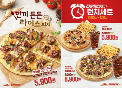 대표적으로 또띠아 위에 직화불고기 등 각종 재료를 토핑한 '한 끼 든든 라이스 피자' 라는 신메뉴를 5900원에 판매한다. 이 밖에도 싱글 피자, 감자튀김, 음료 등으로 구성된 세트도 6000~7000 원대 가격으로 판매한다.