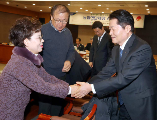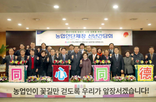 한편, 이날 간담회 말미에는 2019년 새해 풍년기원과 농업인의 행복을 기원하는 의미로 참석 단체장이“농업인 꽃길 퍼포먼스”를 펼쳐 참석자 모두 새해에는 농업인들이 꽃길만을 걷기를 소망하는 마음을 전하기도 하였다.