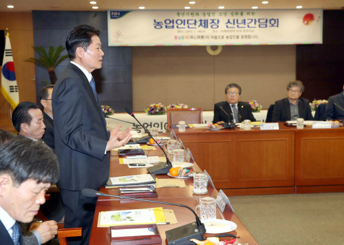 | 농협중앙회 김병원회장은 18일 농협중앙회 본관에서 한국농축산연합회 소속 농업인단체장 및 농민의 길 소속 단체장, 농협임직원 등이 참석한 가운데 2019년 신년인사를 하고 있다. 농협 제공 |