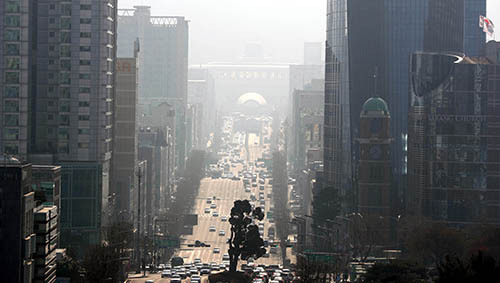| 뿌옇게 흐려진 서울 하늘 미세먼지가 나쁨 단계를 보인 23일 오전 서울 서초구 누에다리에서 바라본 도심이 미세먼지로 뒤덮여 뿌옇다. 뉴시스 |