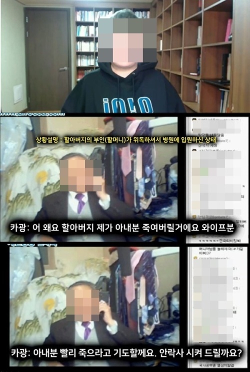 실제로 카광은 2012년 인터넷 개인 방송을 진행하는 한 노인 BJ의 '아내가 위독하다'는 발언에 장난 전화를 걸어 "안락사를 시켜주겠다"고 막말을 했다.