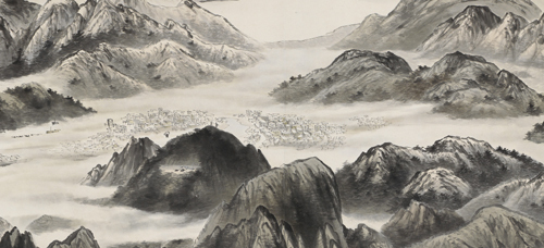 지난해 작고한 한국화의 대가 유산(酉山) 민경갑 화백의 대작 ‘낙동강천리도’가 최근 6개월의 복원 끝에 일반인에게 공개됐다. 민 화백이 그린 ‘낙동강천리도’는 길이 2360㎝, 폭 105㎝ 크기의 대형 수묵산수화로 영남대가 소장하고 있다. 낙동강 발원지에서부터 남해 하구에 이르기까지 1300리 길 낙동강과 주변 전경을 총 9폭에 담았다.