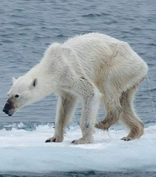 자신은 굶주리더라도 새끼만은 배부르게 먹이고 싶었던 어미의 모정이 드러난 이 사진은 보는 이들로 하여금 환경 보호의 경각심을 일깨우게 한다.