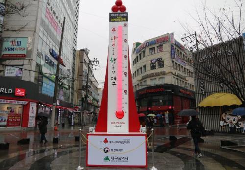 | 4년 연속 100도를 달성한 대구 동성로 사랑의 온도탑. 대구시 제공 |