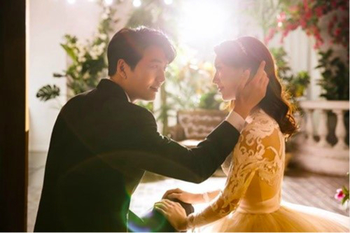 공개된 웨딩화보에서 이필모는 웨딩드레스를 입은 서수연을 사랑스러운 눈빛으로 바라보고 있다. 두 사람은 자연스럽게 스킨십을 하며 서로를 마주보며 환하게 웃고 있다.